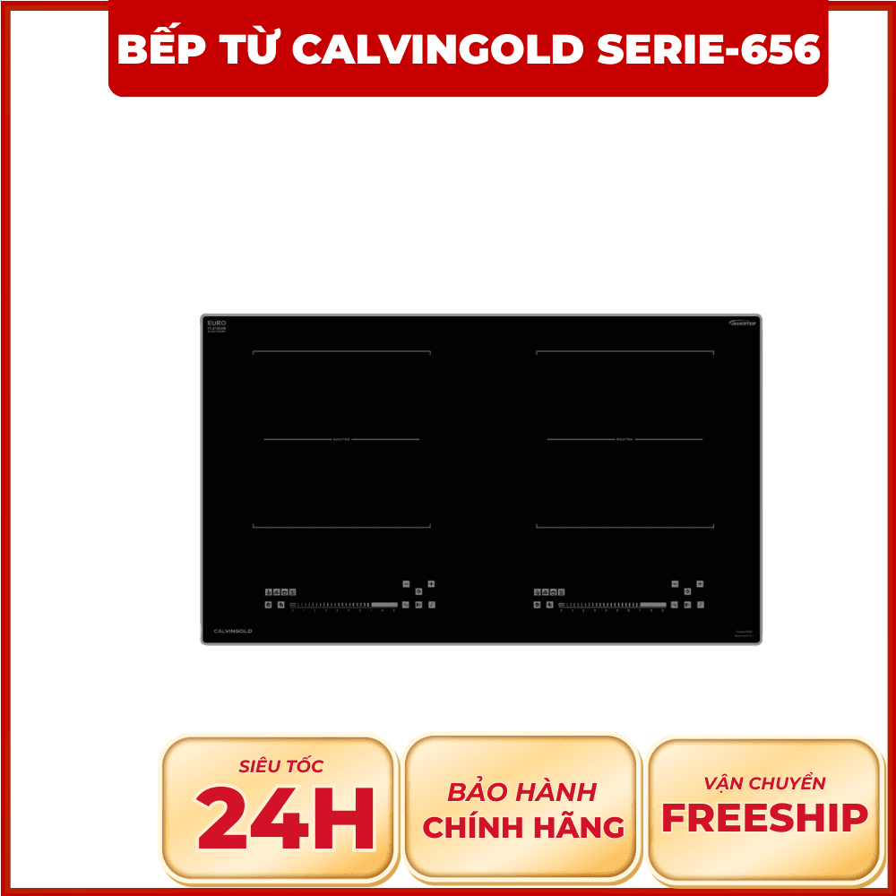 Bếp từ Calvingold Serie-656 là bếp từ đôi công suất lớn, tích hợp Booster 2600W cho mỗi lò, mặt kính bền đẹp và hệ thống an toàn đa lớp, phù hợp cho mọi gian bếp gia đình hiện đại.
