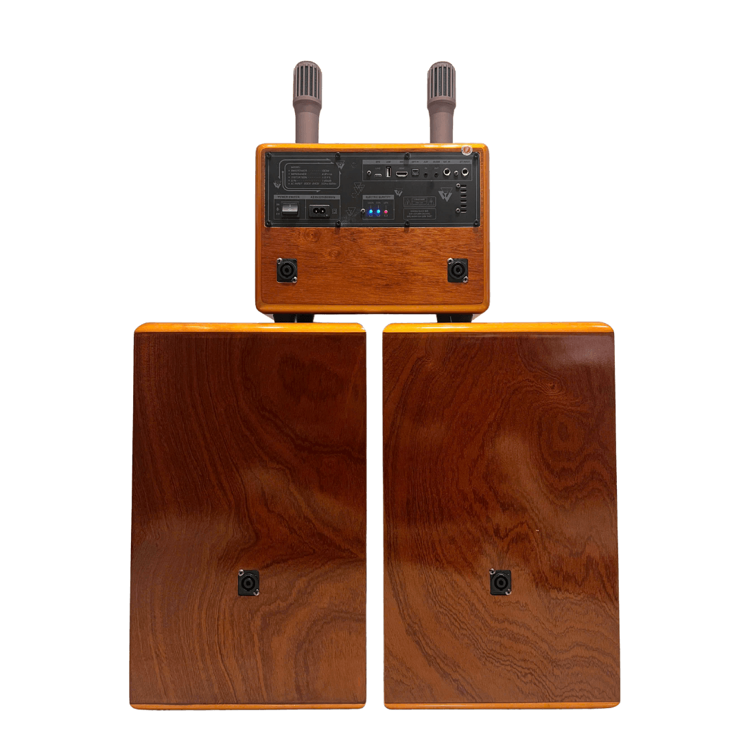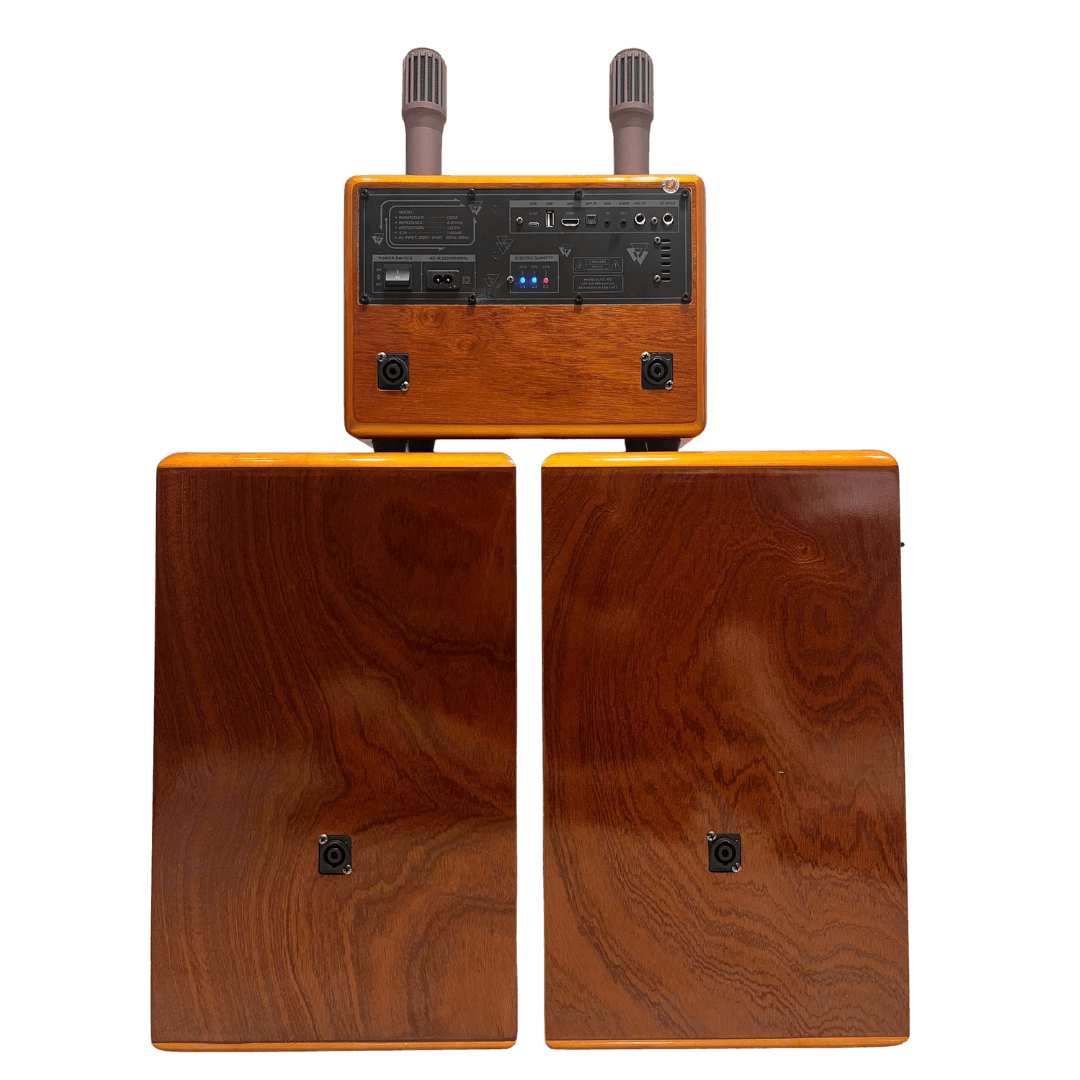 - Kết nối linh hoạt: Bluetooth cho điện thoại, USB/SD phát nhạc offline, AUX/RCA để nối TV/đầu karaoke/PC, thêm ngõ 6.5mm cho micro dây/guitar khi cần biểu diễn. Mặt sau bố trí cổng khoa học, ký hiệu rõ.