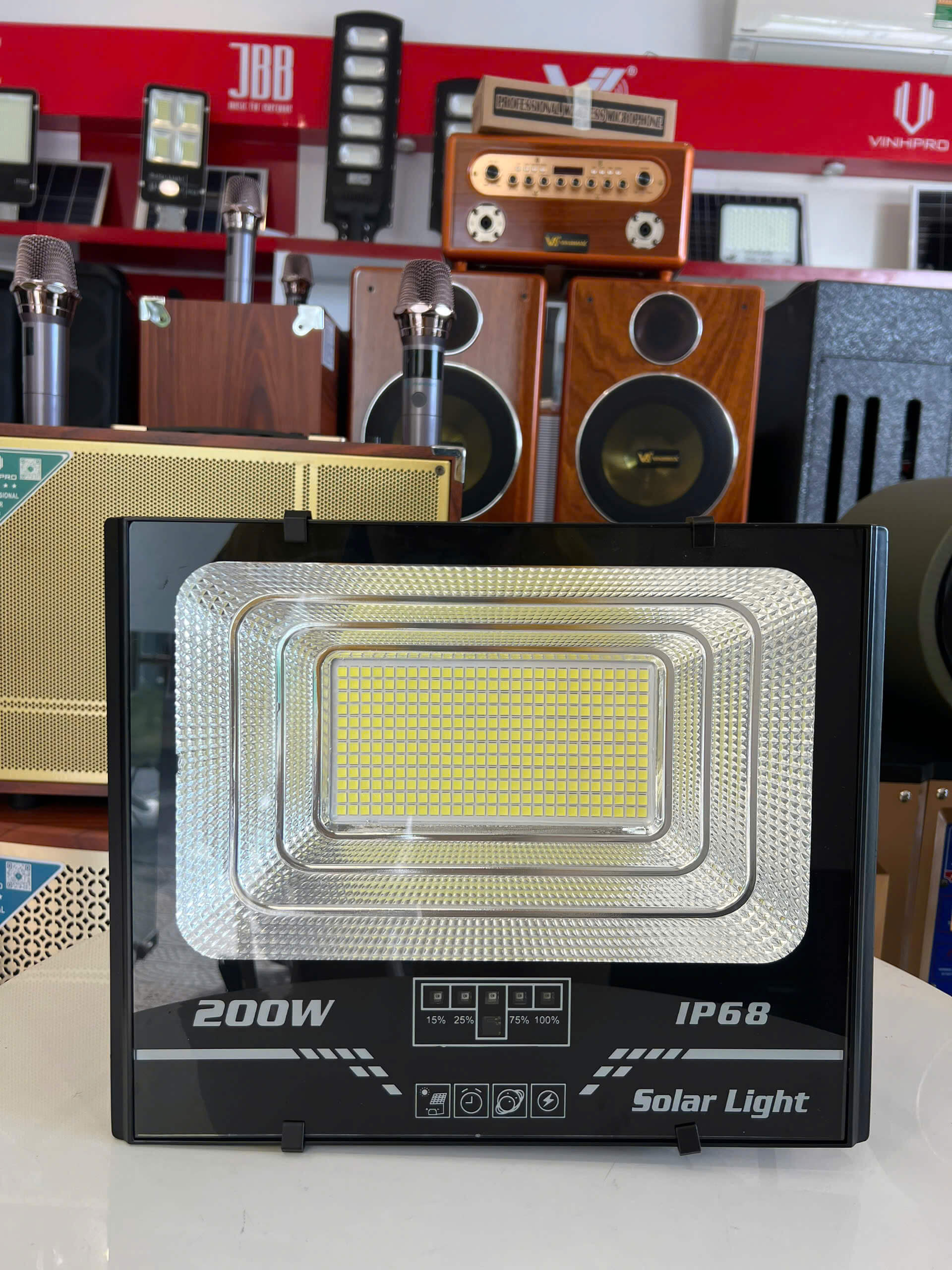 Đèn năng lượng mặt trời IP68 200W – siêu sáng, tiết kiệm điện, chống nước tuyệt đối, phù hợp mọi không gian ngoài trời.