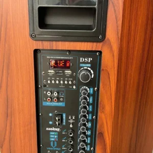 - Micro Hút Âm Chống Hú Rít: Đi kèm loa là cặp micro không dây UHF cao cấp có khả năng hút âm cực tốt, giúp người hát cảm thấy nhẹ nhàng, không tốn hơi. Đặc biệt, công nghệ xử lý tín hiệu số (DSP) tích hợp giúp hạn chế tối đa tình trạng hú rít khó chịu, đồng thời giữ kết nối sóng ổn định trong phạm vi rộng.