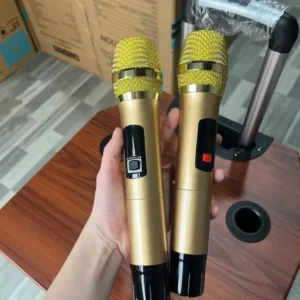 Sản phẩm đi kèm bộ phụ kiện đầy đủ gồm 2 micro không dây chất lượng cao, dây sạc và remote điều khiển từ xa, mang đến sự tiện lợi tối đa cho mọi cuộc vui. Hệ thống thu sóng ổn định giúp bạn thoải mái trình diễn mà không lo mất sóng hay gián đoạn.