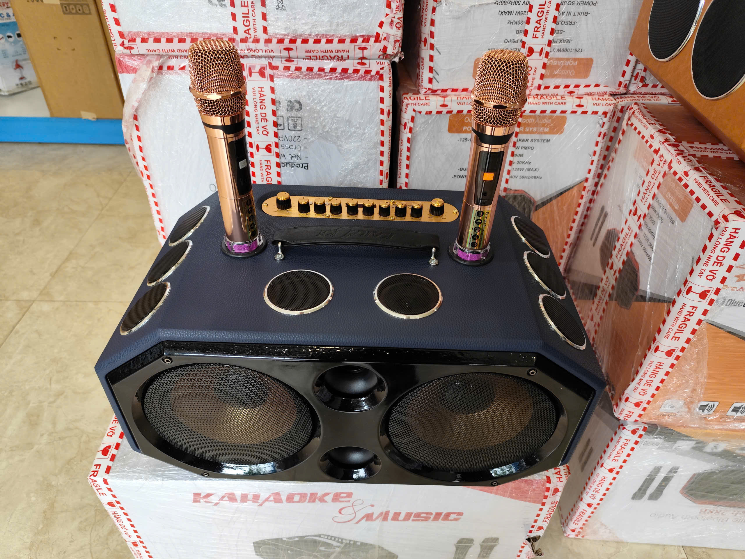 - Micro Không Dây UHF Thế Hệ Mới: Đi kèm với loa là cặp micro không dây sử dụng sóng UHF cao cấp. Công nghệ này đảm bảo tín hiệu luôn ổn định, khoảng cách kết nối xa và khả năng chống nhiễu sóng vượt trội so với các loại micro VHF thông thường. Đầu củ micro có độ nhạy cao, khả năng hút âm cực tốt và lọc tạp âm hiệu quả, giúp người hát không cần tốn quá nhiều sức mà vẫn thể hiện được trọn vẹn cảm xúc trong giọng hát. Đặc biệt, tính năng chống hú rít được tích hợp thông minh giúp loại bỏ gần như 100% tiếng hú chói tai, mang đến trải nghiệm karaoke mượt mà và tự tin.