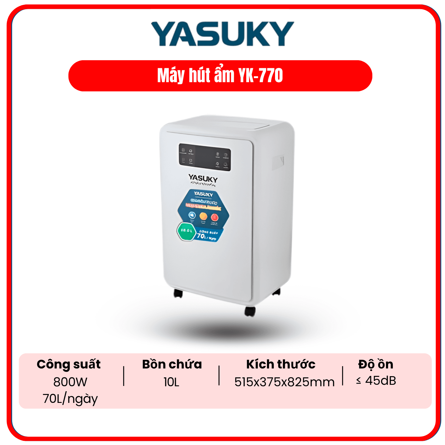 Máy hút ẩm YASUKY YK-770 không chỉ là một thiết bị gia dụng, mà là một khoản đầu tư chiến lược để bảo vệ tài sản của doanh nghiệp. Với công suất 70L/ngày, vận hành êm ái và bền bỉ, sản phẩm xứng đáng là người gác cổng tin cậy cho mọi kho hàng và nhà xưởng hiện đại. Đừng để ẩm mốc làm hao hụt lợi nhuận của bạn, hãy trang bị YK-770 ngay hôm nay!