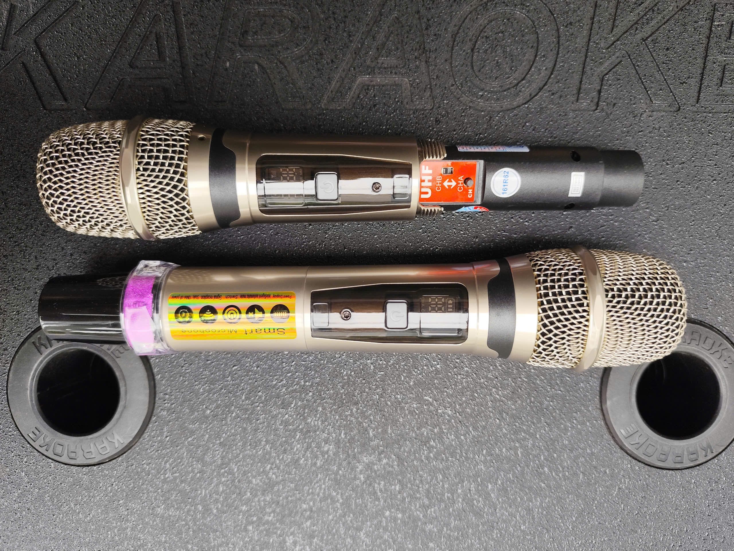 Sản phẩm đi kèm: micro x2 (ổn định bám sóng), sạc, remote. Hỗ trợ kết nối USB MP3, LINE IN, AUX để chơi nhạc nhanh, xuất âm ra thiết bị khác qua AUDIO OUT khi cần phối ghép hệ thống.