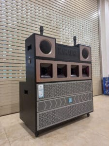 - Vật Liệu Bền Bỉ & Thẩm Mỹ: Thùng loa được làm từ chất liệu gỗ cao cấp, phủ lớp sơn sần giúp tăng khả năng chống chịu va đập và hạn chế tối đa trầy xước. Sự kết hợp giữa gỗ và lưới thép ở mặt trước không chỉ bảo vệ củ loa an toàn mà còn tạo nên một tổng thể hài hòa, sang trọng.