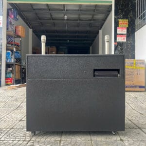 - Thiết Kế Hầm Hố Nhưng Vẫn Linh Hoạt: Thùng loa kéo đôi được chế tác từ gỗ ép cao cấp, phủ lớp sơn sần mạnh mẽ, không chỉ mang lại vẻ ngoài ấn tượng mà còn giúp cộng hưởng âm thanh tốt hơn và chống chịu va đập hiệu quả. Hệ thống 4 bánh xe xoay 360 độ cùng tay kéo vững chắc giúp việc di chuyển “khối tài sản” âm thanh này trở nên dễ dàng và linh hoạt.
